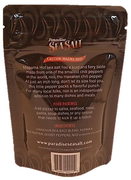 Ingredients: Hawaiian Sea Salt Blend, Paprika, Red Pepper, Ghost Peppers, Hawaiian Chili Peppers